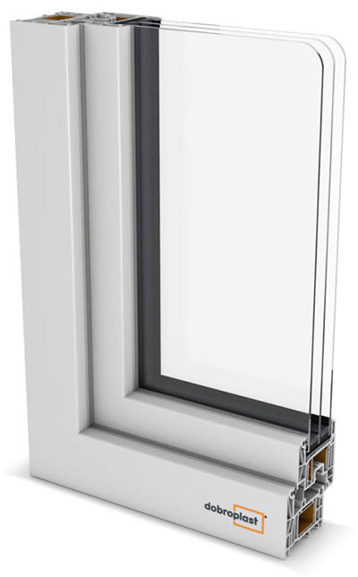 - System o głębokości zabudowy 76 mm z uszczelką środkową o najwyższej izolacyjności termicznej – wartość współczynnika Uf do 1,0 W/(m2K) w wersji standardowej, natomist Uw dla okna referencyjnego do 0,73 W/(m2K).